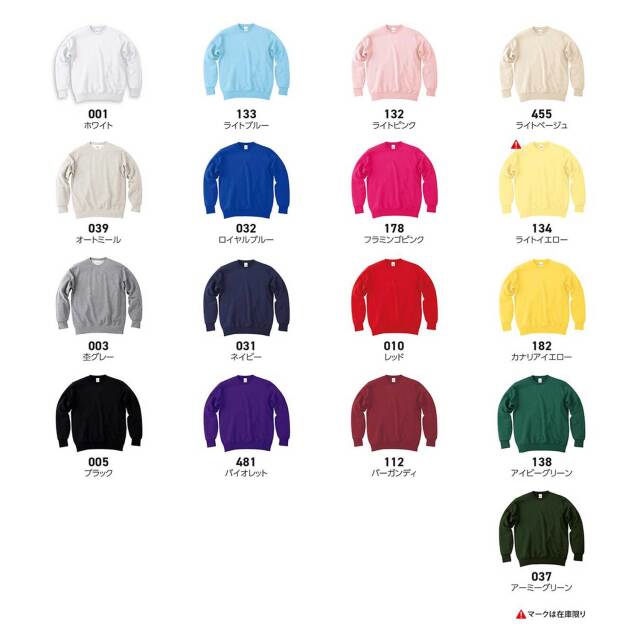 ホーム パーカー・スウェットスウェット ブランドPrintstar レディース・キッズキッズウェア 色とサイズが豊富なスタンダードタイプ 一部在庫限りの商品となります。 あらかじめご了承ください。 【アイテム情報】 ◎17カラー/8サイズ ◎TEAR AWAY LABEL 【素材】 ◎綿100% ※杢グレー:綿60% ポリエステル40% ※オートミール:綿84% ポリエステル16% ◎生地の重さ:330g/m² 9.7oz ◎生地の種類:裏毛 【生産国】 ◎ベトナム 【Printstar】(9.7oz)スタンダードトレーナー [00183-NSC] 参考上代: ¥4,160(税込) ~ ¥5,270(税込) 価格: ¥2,100 (税込) ~ ¥2,640 (税込) 販売期間: カラー: 選択してください 001 ホワイト 003 杢グレー 005 ブラック 010 レッド 031 ネイビー 032 ロイヤルブルー 037 アーミーグリーン 039 オートミール 112 バーガンディ 132 ライトピンク 133 ライトブルー 138 アイビーグリーン 178 フラミンゴピンク 182 カナリアイエロー 455 ライトベージュ 481 バイオレット サイズ: 選択してください XS S M L XL 2XL 3XL 4XL 参考上代: - 価格: - オリジナル加工について: プリントや刺繍などのオリジナル加工を希望されるかどうか、ご回答をお願い致します。 【無地での出荷をご希望の方】 加工無しをお選びください。 商品のご用意が出来次第、発送をさせていただきます。 在庫状況により、商品確保が難しい場合等は別途ご案内を差し上げます。 【加工を希望される方】 ご希望の加工方法をご連絡ください。 ご注文後に "メール" で加工内容を確認する連絡を差し上げます。 その内容に合わせてご注文金額を決定、加算させていただきます。 選択してください 加工無し【無地で出荷】 オリジナル加工(刺繍を希望)(別途お見積り) オリジナル加工(プリントを希望)(別途お見積り) オリジナル加工(その他・未定)(別途お見積り) 数量: 枚 カラーサイズ参考上代価格在庫001 ホワイトXS¥4,160(税込)¥2,100(税込)×S¥4,160(税込)¥2,100(税込)○M¥4,160(税込)¥2,100(税込)○L¥4,160(税込)¥2,100(税込)○XL¥4,160(税込)¥2,100(税込)○2XL¥4,160(税込)¥2,100(税込)○3XL¥5,270(税込)¥2,640(税込)○4XL¥5,270(税込)¥2,640(税込)○003 杢グレーXS¥4,160(税込)¥2,100(税込)○S¥4,160(税込)¥2,100(税込)○M¥4,160(税込)¥2,100(税込)○L¥4,160(税込)¥2,100(税込)○XL¥4,160(税込)¥2,100(税込)○2XL¥4,160(税込)¥2,100(税込)○3XL¥5,270(税込)¥2,640(税込)○4XL¥5,270(税込)¥2,640(税込)○005 ブラックXS¥4,160(税込)¥2,100(税込)×S¥4,160(税込)¥2,100(税込)○M¥4,160(税込)¥2,100(税込)○L¥4,160(税込)¥2,100(税込)○XL¥4,160(税込)¥2,100(税込)○2XL¥4,160(税込)¥2,100(税込)○3XL¥5,270(税込)¥2,640(税込)○4XL¥5,270(税込)¥2,640(税込)×010 レッドXS¥4,160(税込)¥2,100(税込)○S¥4,160(税込)¥2,100(税込)○M¥4,160(税込)¥2,100(税込)○L¥4,160(税込)¥2,100(税込)○XL¥4,160(税込)¥2,100(税込)○2XL¥4,160(税込)¥2,100(税込)○3XL¥5,270(税込)¥2,640(税込)○4XL¥5,270(税込)¥2,640(税込)○031 ネイビーXS¥4,160(税込)¥2,100(税込)○S¥4,160(税込)¥2,100(税込)○M¥4,160(税込)¥2,100(税込)○L¥4,160(税込)¥2,100(税込)○XL¥4,160(税込)¥2,100(税込)○2XL¥4,160(税込)¥2,100(税込)○3XL¥5,270(税込)¥2,640(税込)○4XL¥5,270(税込)¥2,640(税込)×032 ロイヤルブルーXS¥4,160(税込)¥2,100(税込)×S¥4,160(税込)¥2,100(税込)○M¥4,160(税込)¥2,100(税込)○L¥4,160(税込)¥2,100(税込)○XL¥4,160(税込)¥2,100(税込)○2XL¥4,160(税込)¥2,100(税込)○3XL¥5,270(税込)¥2,640(税込)○4XL¥5,270(税込)¥2,640(税込)×037 アーミーグリーンXS¥4,160(税込)¥2,100(税込)○S¥4,160(税込)¥2,100(税込)○M¥4,160(税込)¥2,100(税込)○L¥4,160(税込)¥2,100(税込)○XL¥4,160(税込)¥2,100(税込)○2XL¥4,160(税込)¥2,100(税込)○3XL¥5,270(税込)¥2,640(税込)○4XL¥5,270(税込)¥2,640(税込)○039 オートミールXS¥4,160(税込)¥2,100(税込)×S¥4,160(税込)¥2,100(税込)○M¥4,160(税込)¥2,100(税込)○L¥4,160(税込)¥2,100(税込)○XL¥4,160(税込)¥2,100(税込)○2XL¥4,160(税込)¥2,100(税込)○3XL¥5,270(税込)¥2,640(税込)○4XL¥5,270(税込)¥2,640(税込)○112 バーガンディXS¥4,160(税込)¥2,100(税込)○S¥4,160(税込)¥2,100(税込)○M¥4,160(税込)¥2,100(税込)○L¥4,160(税込)¥2,100(税込)○XL¥4,160(税込)¥2,100(税込)○2XL¥4,160(税込)¥2,100(税込)○3XL¥5,270(税込)¥2,640(税込)○4XL¥5,270(税込)¥2,640(税込)○132 ライトピンクXS¥4,160(税込)¥2,100(税込)○S¥4,160(税込)¥2,100(税込)○M¥4,160(税込)¥2,100(税込)○L¥4,160(税込)¥2,100(税込)○XL¥4,160(税込)¥2,100(税込)○2XL¥4,160(税込)¥2,100(税込)○3XL¥5,270(税込)¥2,640(税込)○4XL¥5,270(税込)¥2,640(税込)○133 ライトブルーXS¥4,160(税込)¥2,100(税込)×S¥4,160(税込)¥2,100(税込)○M¥4,160(税込)¥2,100(税込)○L¥4,160(税込)¥2,100(税込)○XL¥4,160(税込)¥2,100(税込)○2XL¥4,160(税込)¥2,100(税込)○3XL¥5,270(税込)¥2,640(税込)○4XL¥5,270(税込)¥2,640(税込)○138 アイビーグリーンXS¥4,160(税込)¥2,100(税込)○S¥4,160(税込)¥2,100(税込)○M¥4,160(税込)¥2,100(税込)○L¥4,160(税込)¥2,100(税込)○XL¥4,160(税込)¥2,100(税込)○2XL¥4,160(税込)¥2,100(税込)○3XL¥5,270(税込)¥2,640(税込)○4XL¥5,270(税込)¥2,640(税込)○178 フラミンゴピンクXS¥4,160(税込)¥2,100(税込)○S¥4,160(税込)¥2,100(税込)×M¥4,160(税込)¥2,100(税込)×L¥4,160(税込)¥2,100(税込)×XL¥4,160(税込)¥2,100(税込)×2XL¥4,160(税込)