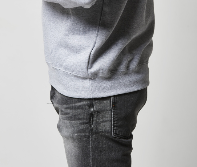 吸水性・伸縮性の優れた裏パイル地に、襟リブ・袖口・裾口にダブルステッチを施した、丈夫さとリラックス感を兼ね備えたスウェット。