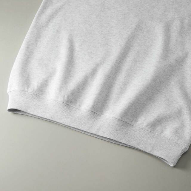締め付け感のないよう広めに仕上げた袖口と裾口のリブや、身体のラインを拾わない程度のサイズ設計がリラックス感を演出します。
