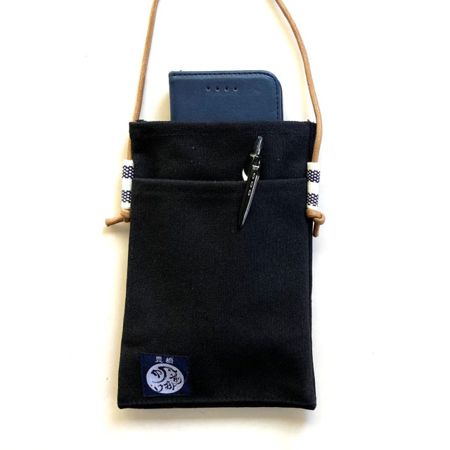 スマホもすっぽり収納できる帆前掛け生地のショルダーポーチ。