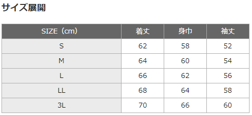 サイズ:S、M、L、LL、3L